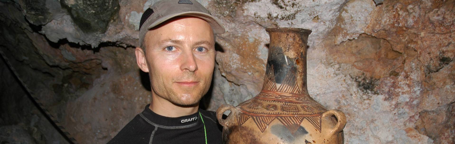The student Matt, found an unopened 1400-year-old Mayan tomb, which we opened and found a skull and five painted Mayan pots.